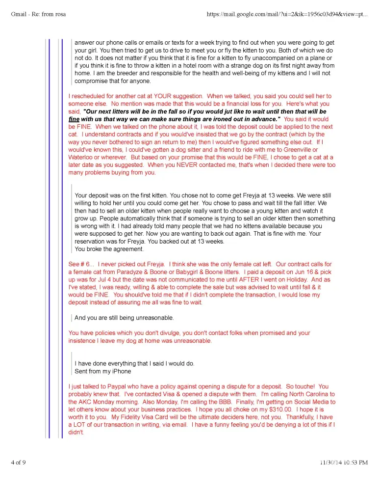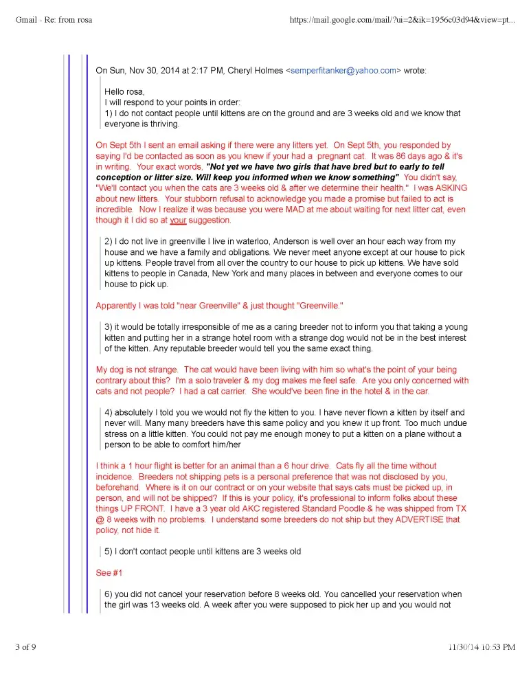 Read full complaint and 1 commentTheresa Porter - Bad cat breeder