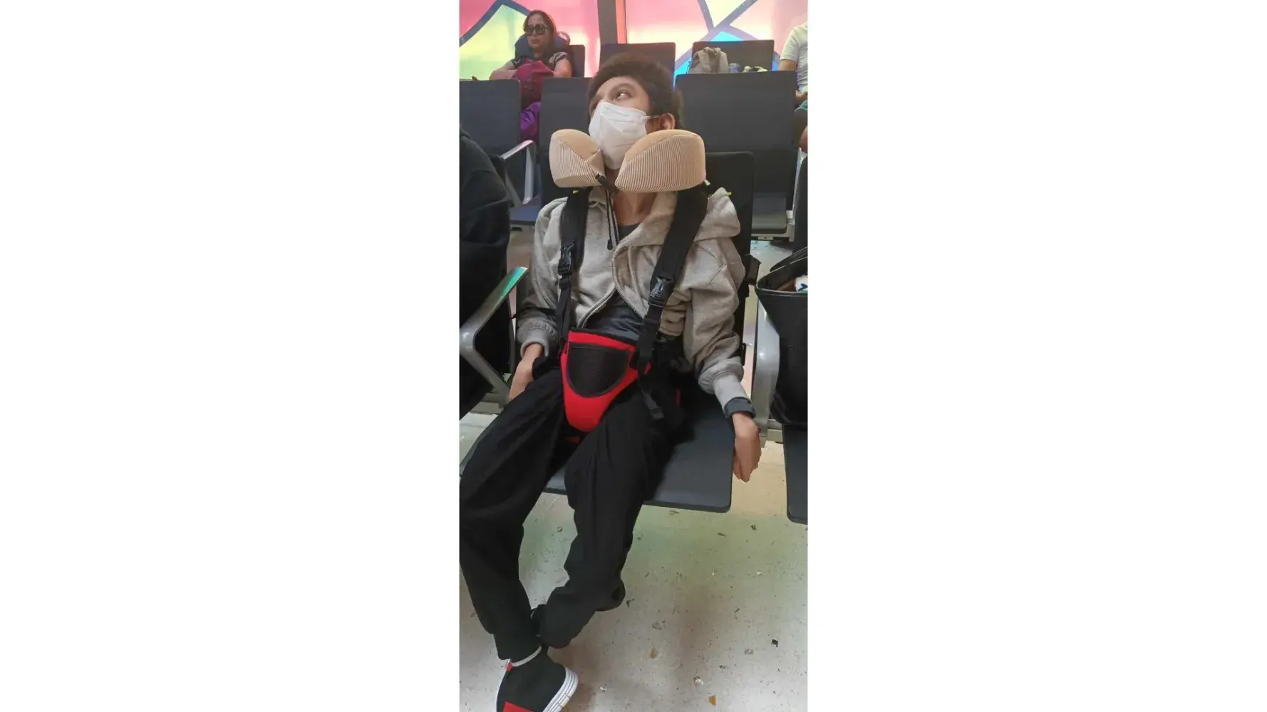 My nephew was refused to board the plane because he will be using a harness to support him sitting upright that is not the same brand specified in Cathay's website. However that brand is not available in the Phils while he has a harness with same specification, customised for his physique. That same harness has been used in their previous international travels without problem. It is still in very good condition and sturdy. As far as we know, this harness is not meant for his safety but to support sitting upright. And since it is made with same specifications as what is specidied in Cathay's website, it will fit just the same to the airline seats. It is also important to mention that the brand specified in Cathay's website is not FAA-certified. So what's the point of using that exact one? We don't really see the point.