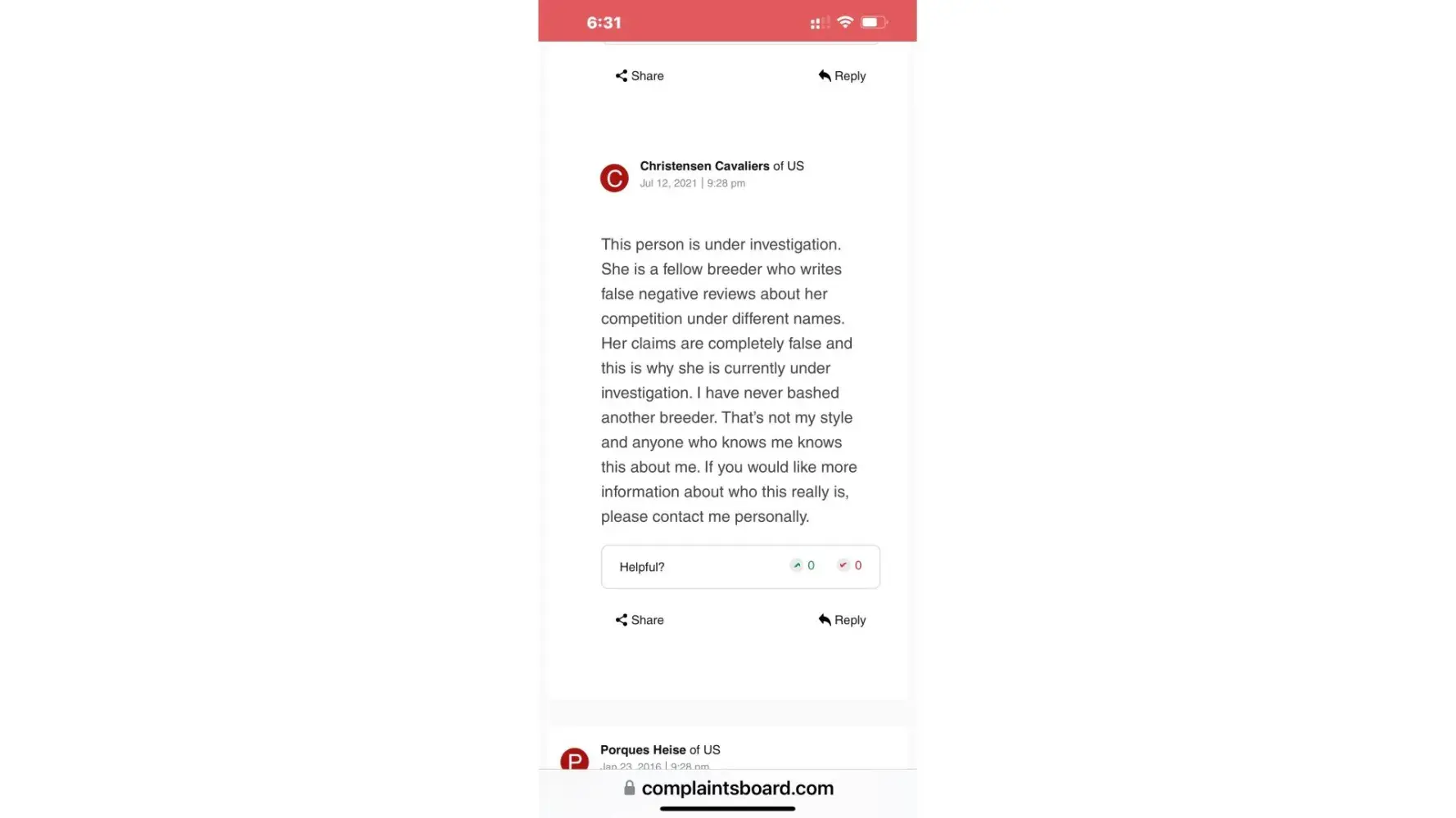 I see on Yelp someone has posted about a puppy they apparently bought from her that had to be euthanised two days after getting it.
