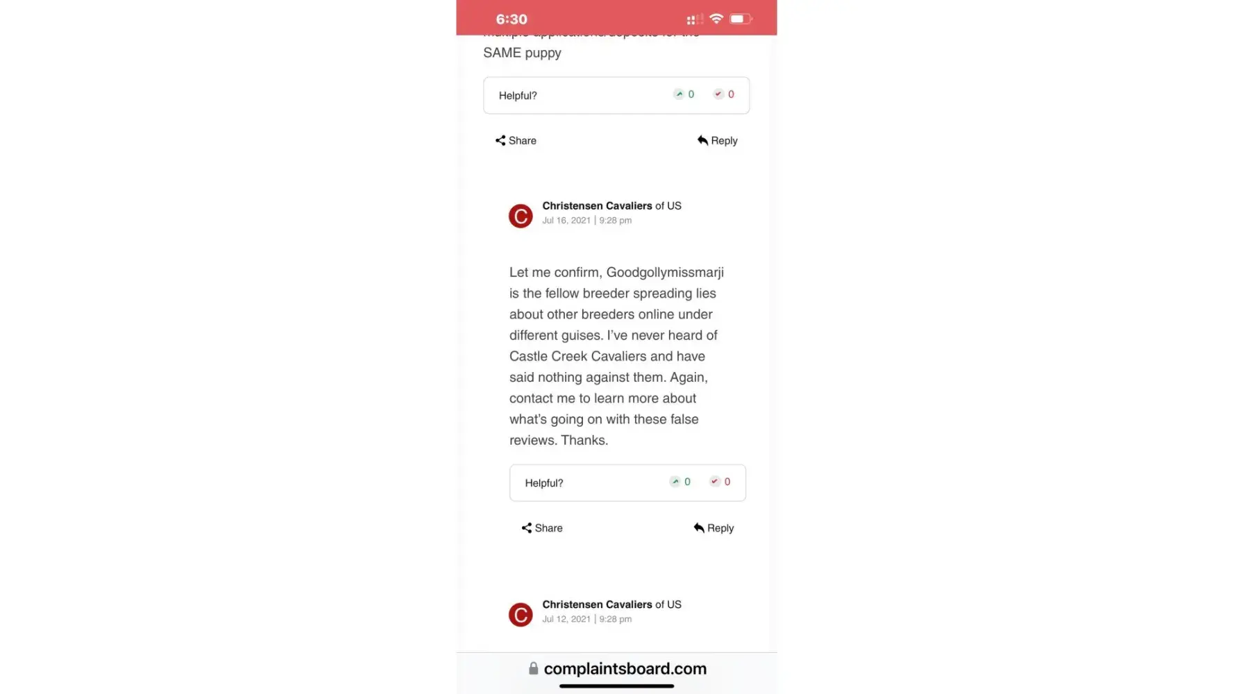 Thank you for responding CKC Love. These threads are causing major confusing can you call us at Cavalier Companions and also ask Complaints board to take it off of this site?