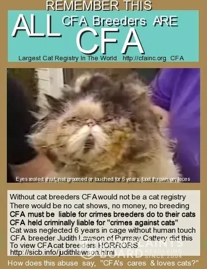 Stop Inhumane Cat Breeding you can view about CFA cat breeders and all the inside info about this org