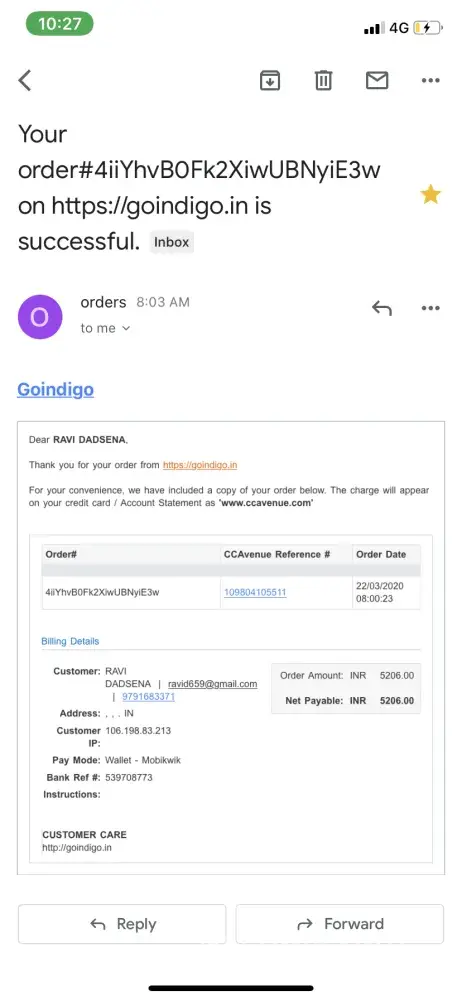 I have made the booking from Chennai to Raipur for 23 March 2020 through indigo app but my booking is not confirmed till now and my money got deducted from my credit card. Please refund my money back.