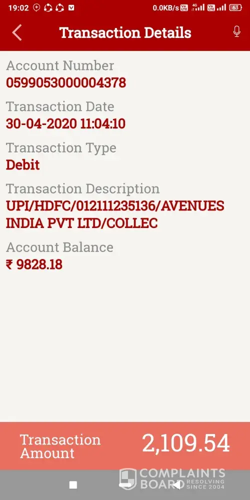 Unfair debit incurred in my Savings Accounts Netbanking -I had applied in a Job Portal website company called "Jobswent.com" and had paid Rs 17, 365 (Rupees Seventeen Thousand Three Hundred and Sixty Five only) for their agreed services in 2017-18. Since no support was rendered till date, when they the company enquired through phone about their services quality feedback, I immediately raised my displeasure and asked them to terminate the services and refund the money back which they had arranged through CC Avenue.