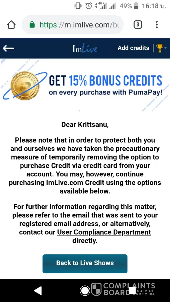 This website told me that i cant use my credits