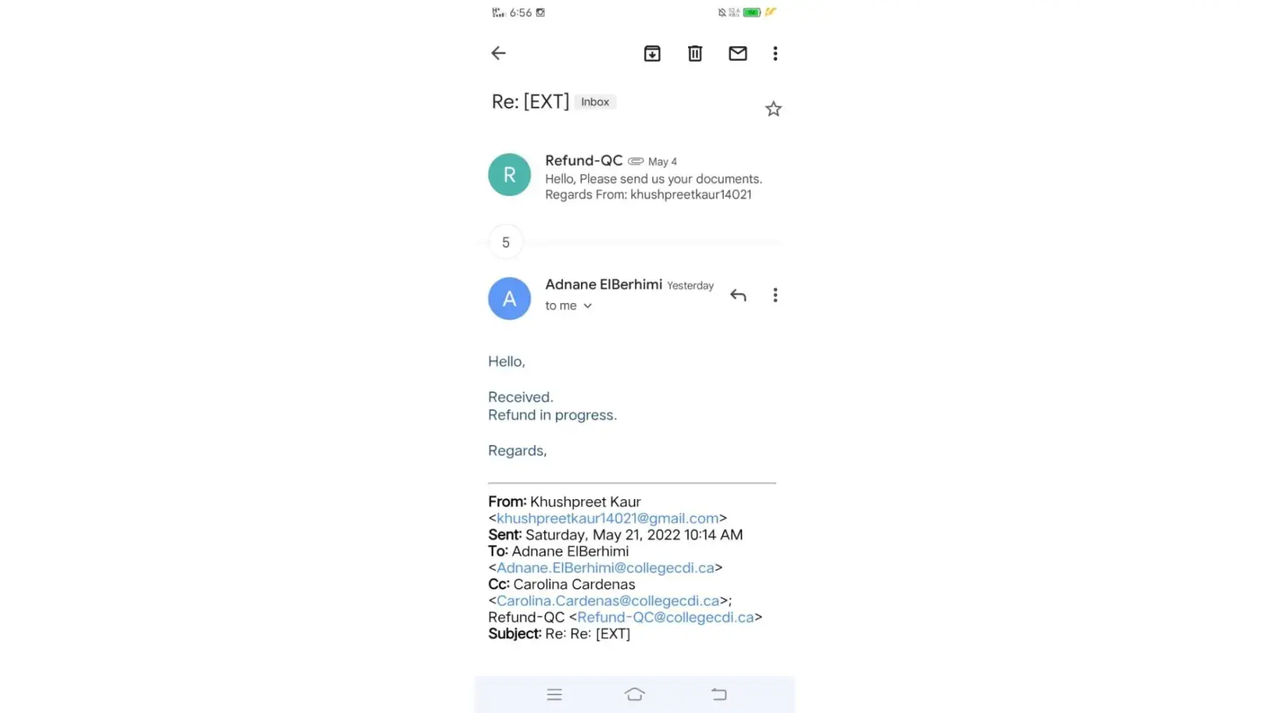 I got an admission in 2021 in cdi college then I processed my visa application and I got Refusal on 20th January 2022. I applied for Refund and Summited all related documents like Fee receipt, Refusal Letter,Fee Refund Request Letter,Account Details. Then I asked College about my Refund Status after a long time (May 2022) They Said to re Send these all Documents. I have sent the documents again within 1-2 days they said your refund is under progress. now its September 2022 about (8 months) I haven't Received fee refund.