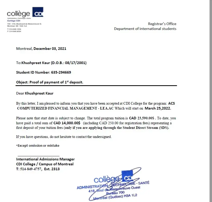 CDI College has left an official reply on this complaint.