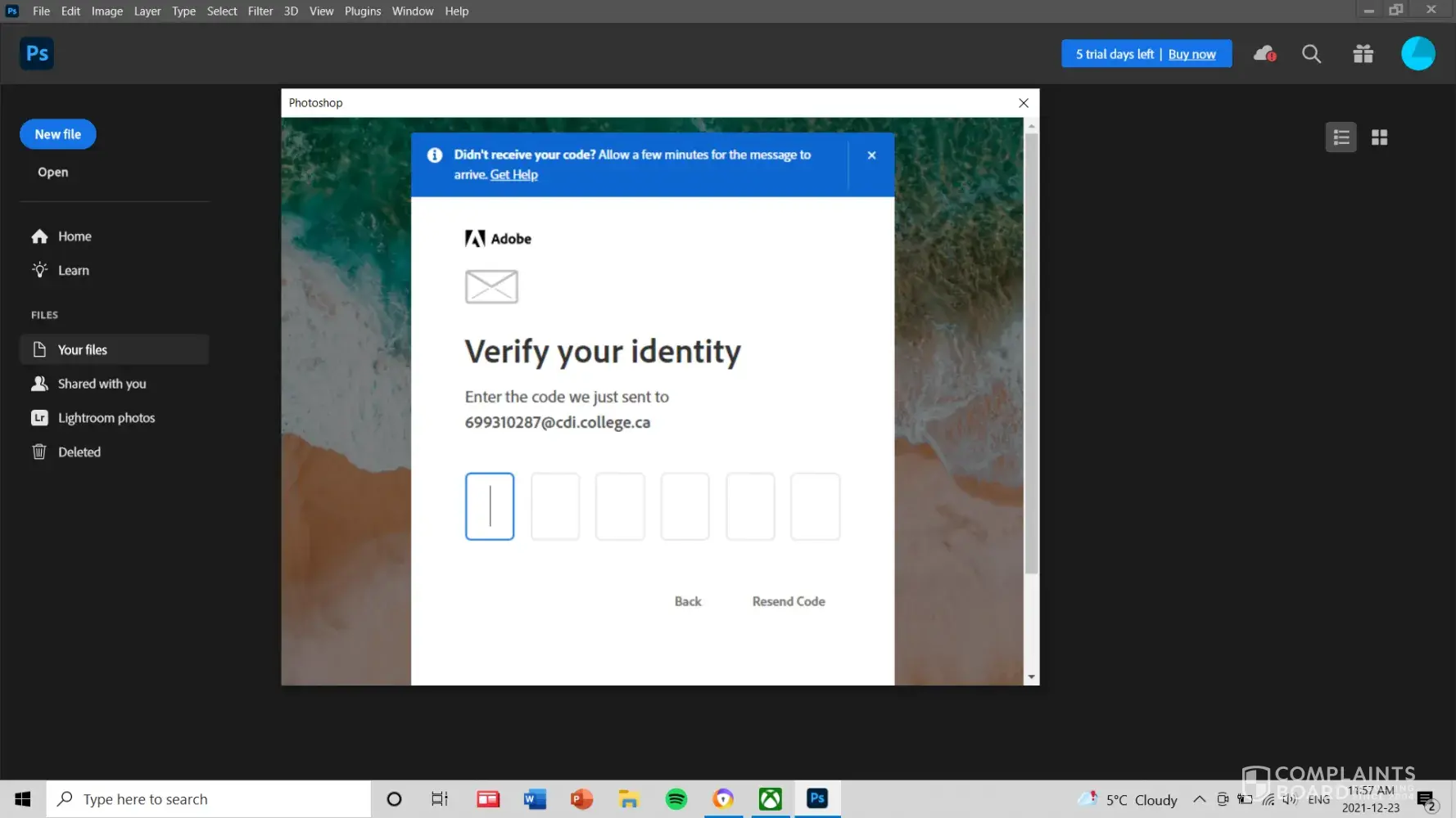 So I was LOCK OUT of ALL of my Adobe Photoshop Programs a week before our Christmas holidays began. I had to VERIFY my identity.. And an CODE was (SENT) to my (STUDENT EMAIL)... witch didn't exists according to Microsoft Bing email. But I had an outlook account accepted my student email.. Making me (THINK) I was fine an could resolve this on my own...