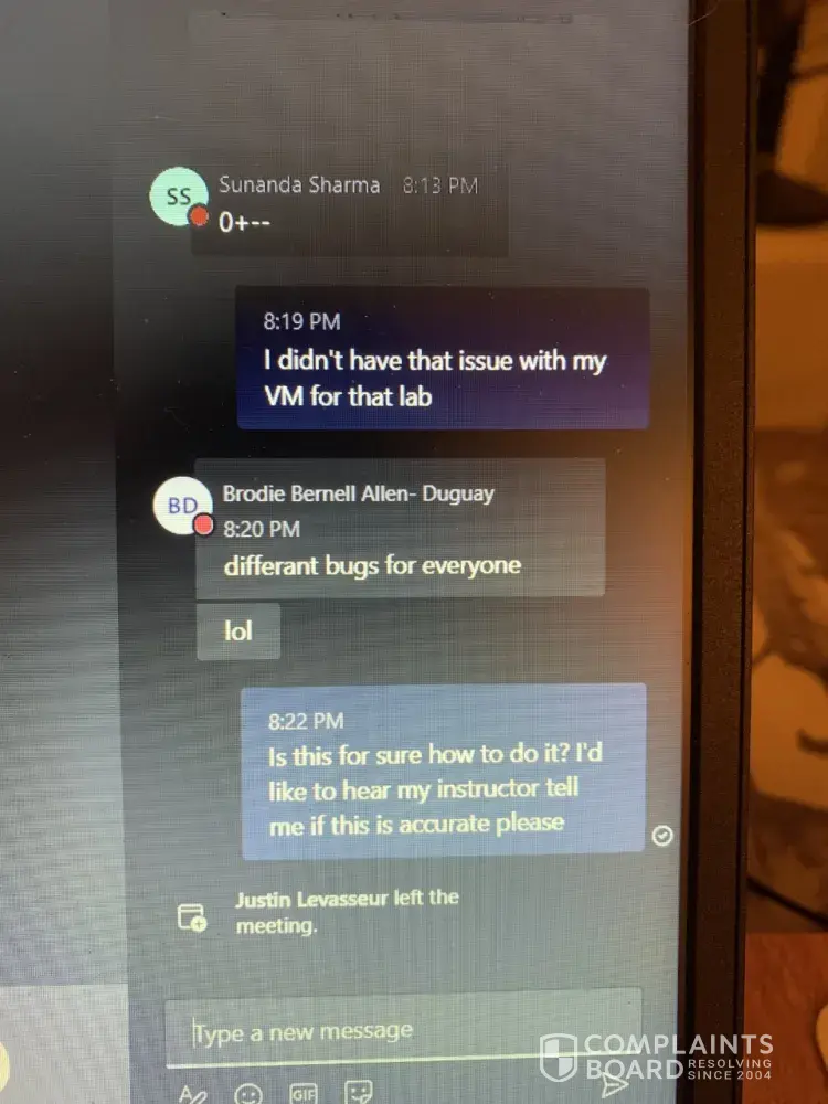 I applied to attend remotely with the CDI Edmonton West and was accepted as a student to study as a Certified Cyber Security Specialist. I then applied for a Manitoba Student Loan and started classes on Oct 26, 2020. When I was enrolled with CDI, I was assured the amount that they asked for in costs were provided to both myself and Manitoba Student Loans (see attachment). While attending classes, there would be online labs that students would attend however, the instructor would allow a student to take over the class, confusing many of us and it became disheartening and frustrating. I sent a complaint and was assured that my grades would not reflect the interruptions, but it interfered with my learning process. I was unable to utilize the online classes and labs for many of my courses due to links not working or not being available. This also includes classes that were spent having an instructor reading from an eBook, that was already read by the students prior to class as well as lectures were supposed to be downloadable however, were not.
