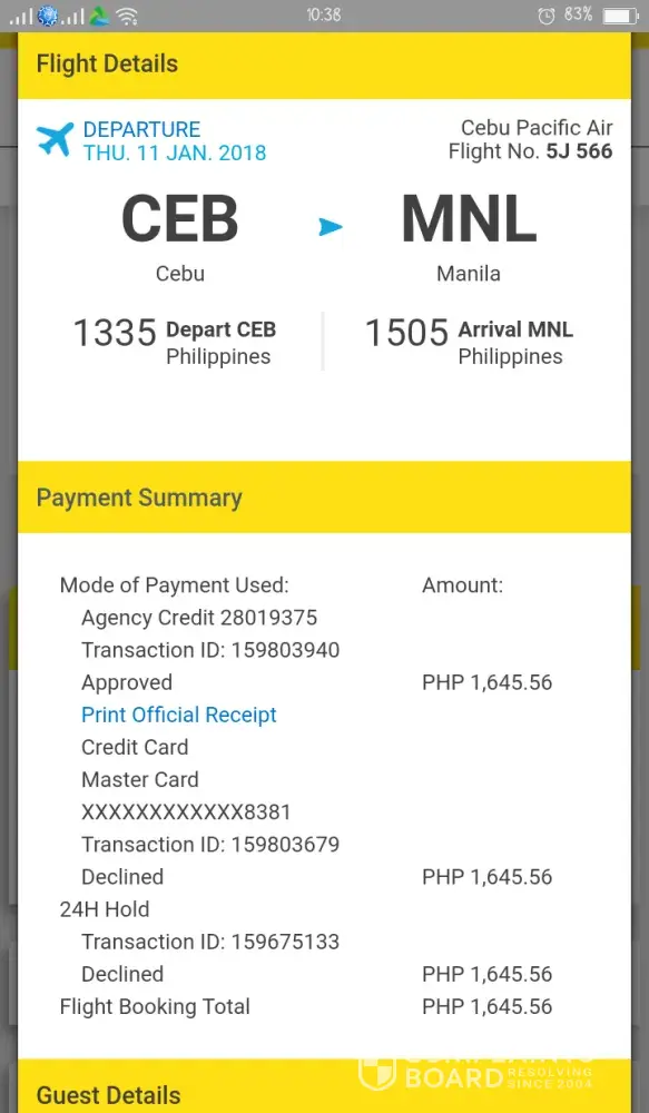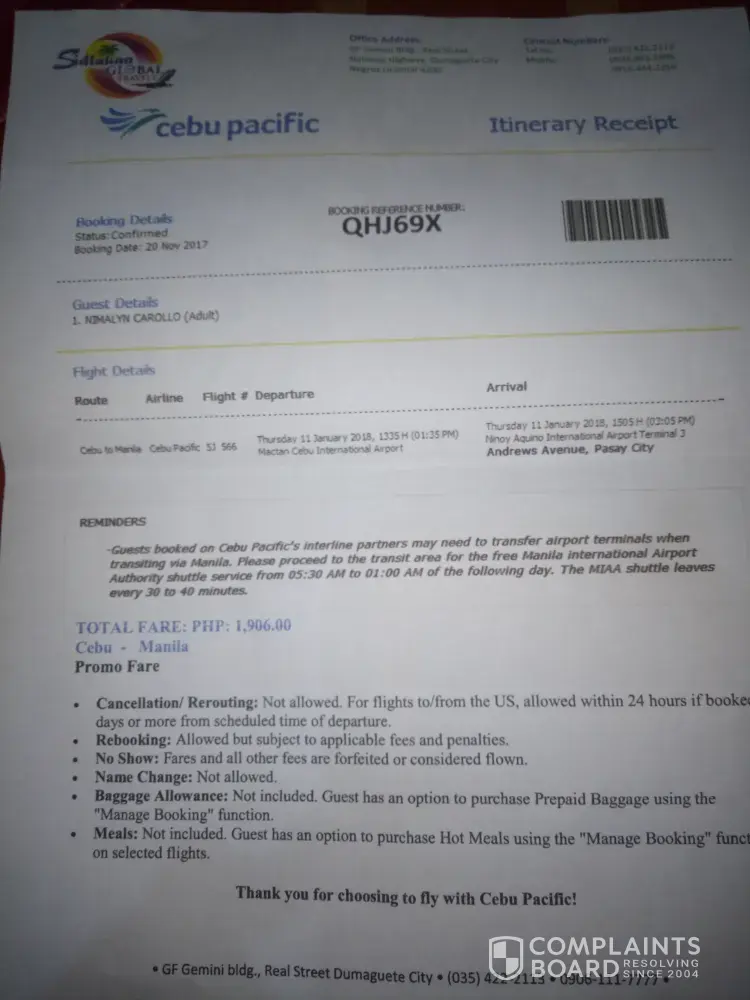 Since ten years ago, I have been booking trip but it was last January that I cannot recognize the booking and ask metro bank to check but even without checking I still paid the amount and emailed Cebu Pacific to disregard as I have not made any claim but what I need it only to clear to I can charge it to my bro.