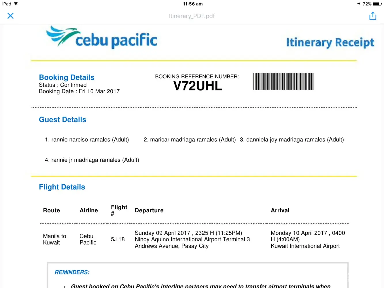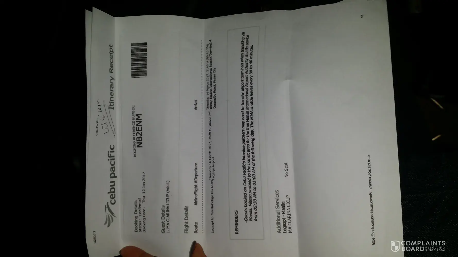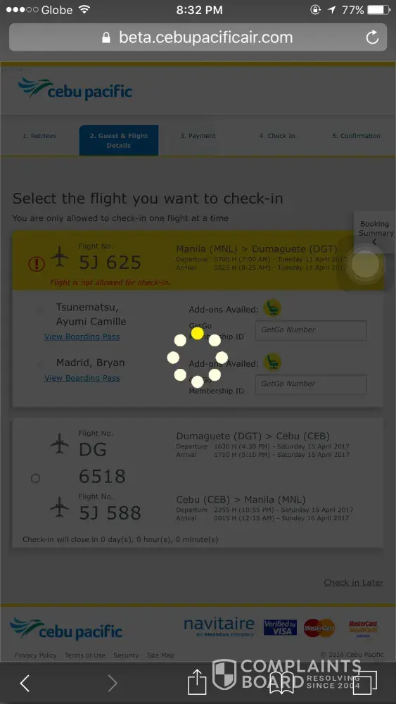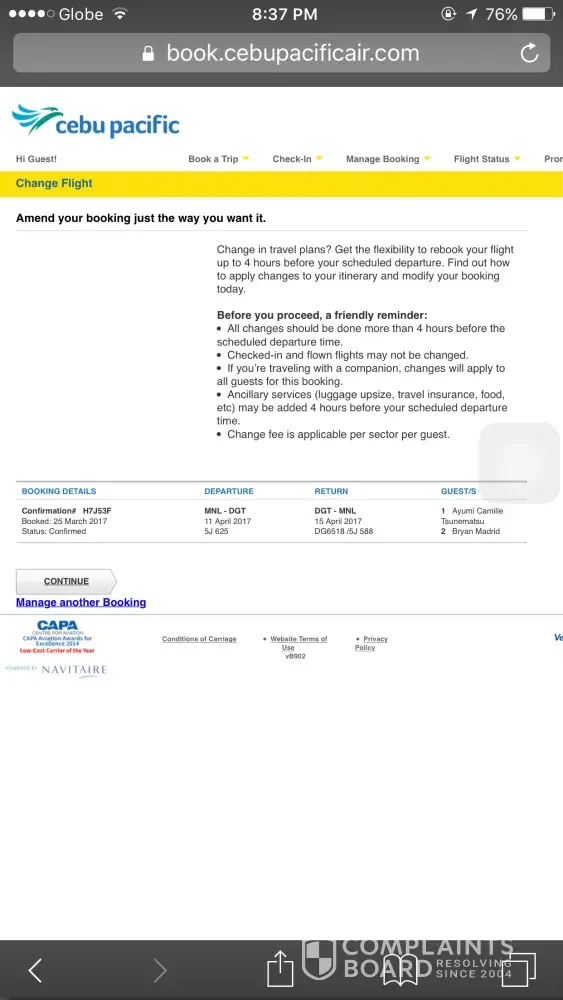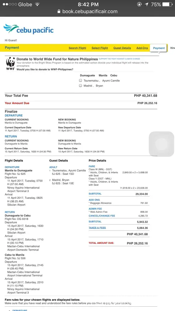 I have made booking online from Cebu Pacific last April 13, 2017.
