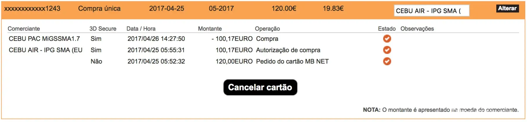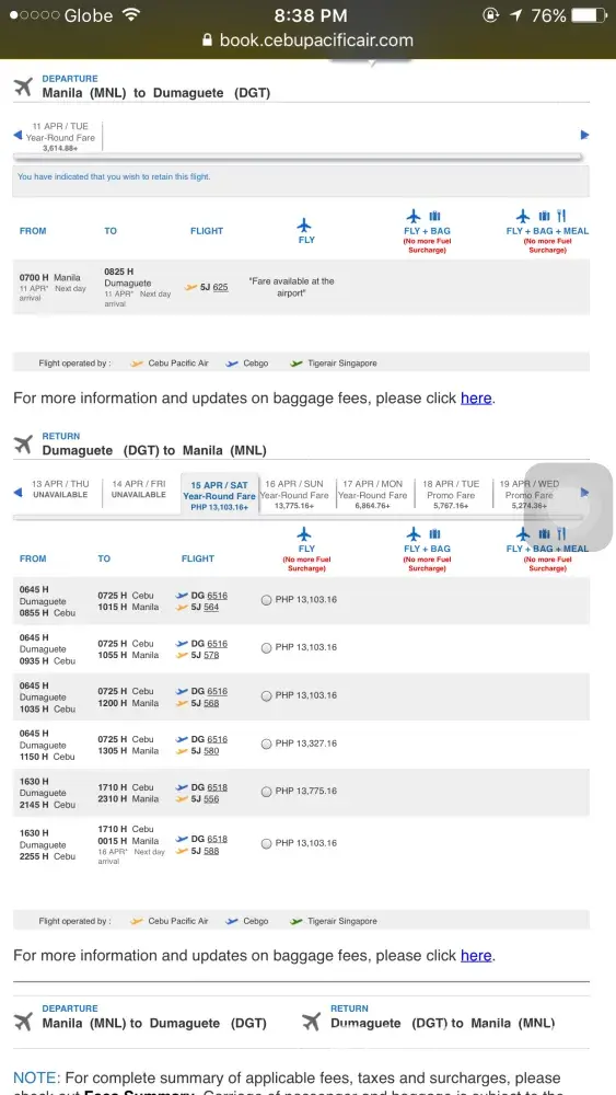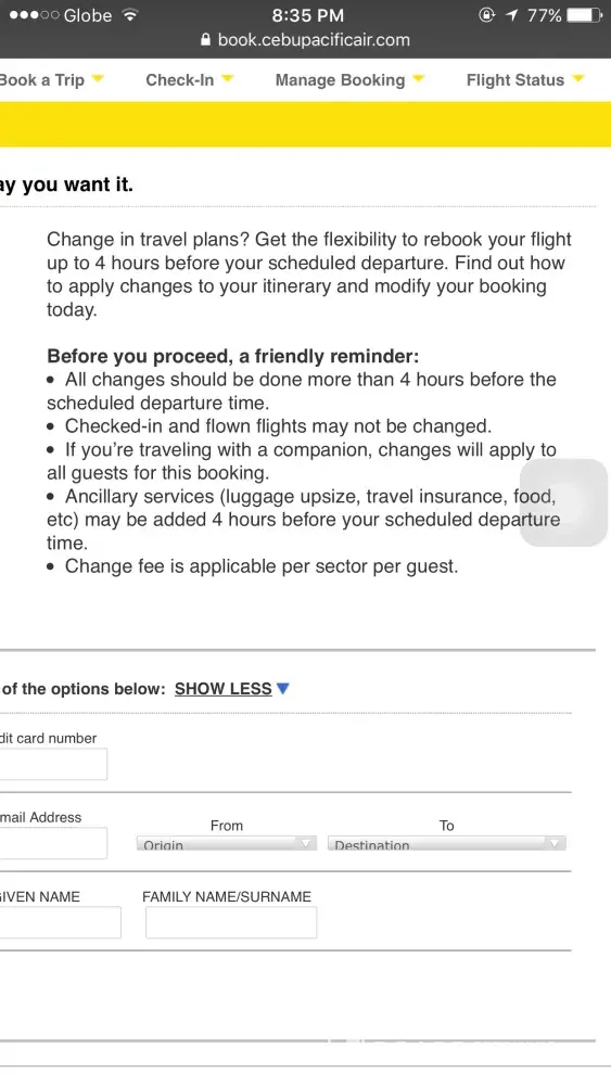 I made the booking process from Cebu Pacific Web site last April 13, 2017.