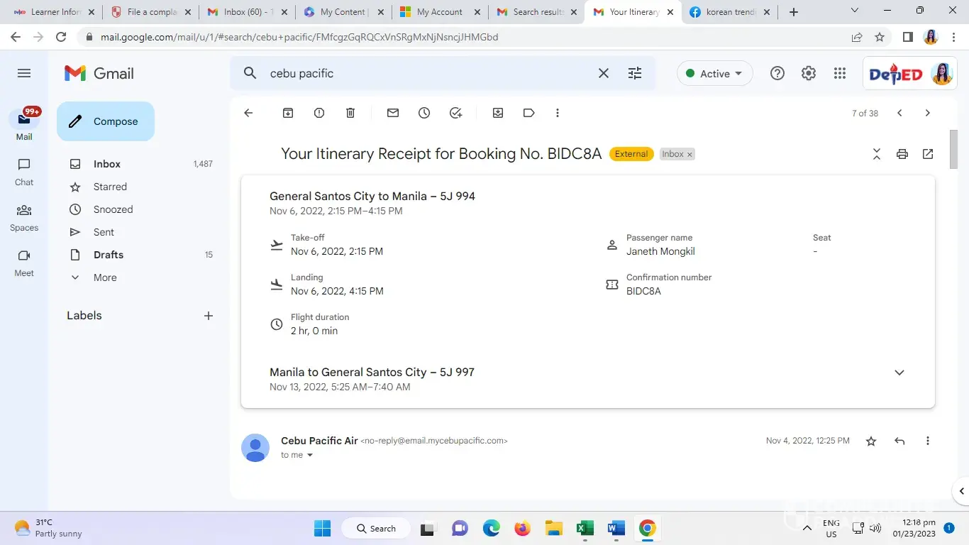 My flight return changed however because of things I have to do -- therefore I rebooked an advanced date (May 28th 2023) this rebooking cost me 1,661.46PHP. Then on the 22nd day of February 2023, I had to make another rebooking because of changes in plans, however.. the following rebooking cost me 9,925.46PHP nearly the cost of my initial ticket on December of year 2022. This was extremely odd, but I felt like I had no choice but to rebook, especially since CebuPacific is fond of raising prices consistently, so I felt I had to rebook quickly to meet my demand.