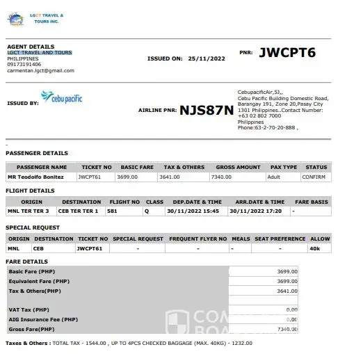 Michel Carignan Reservation Cebu Pacific: MLB55X