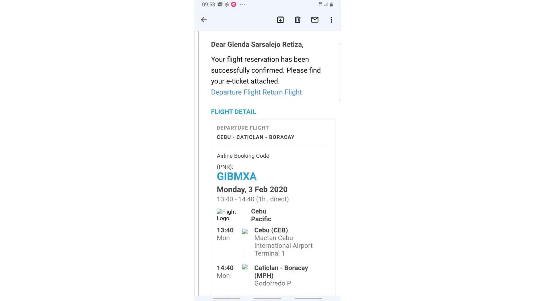Flight No. 5J896 MPH-MNL
