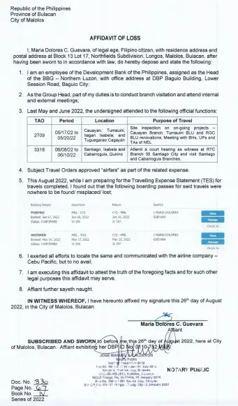 Attached are the travel itineraries and affidavit of loss for the request.