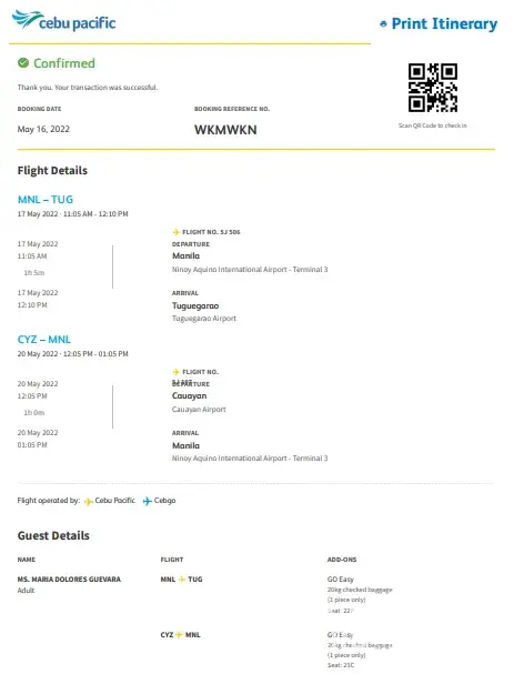 Last May and June 2022, I travelled to/from Manila - Cauayan and Manila - Tuguegarao via the Cebu Pacific Airlines.