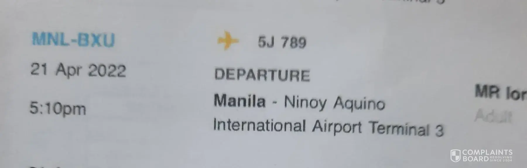 Flight : 5J 789