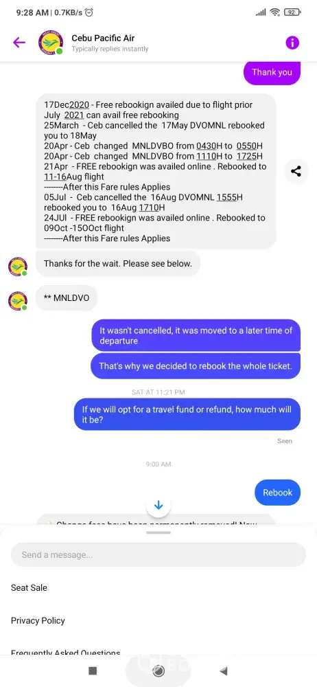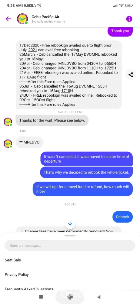 Cebu Pacific Air Rebooking to a date not favorable to us