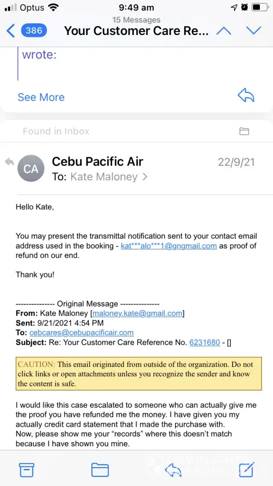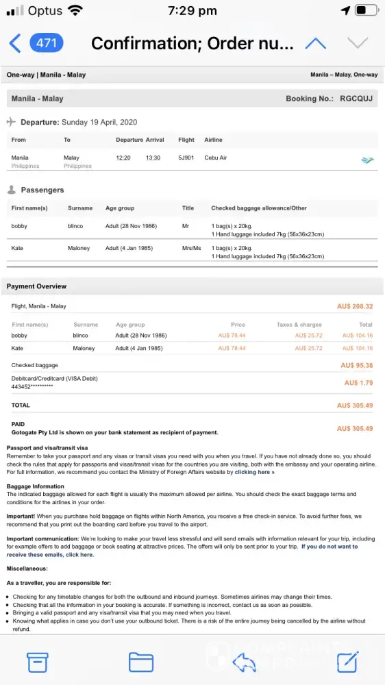 Desired outcome: Cebu Pacific, either refund my money or send me my booking confirmation and itinerary receipt