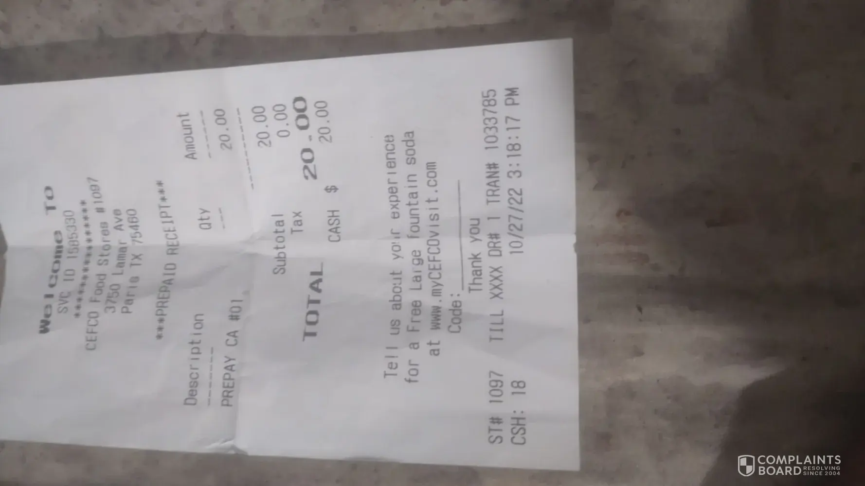 Closed the register. And she said no managers were on duty right now. She did not bother telling me till half an hour after standing in line and was rude about it. Their was also several very unhappy customers that waited behind me. It was at a cefco in pampa right next to the sonic. It was friday night, october 12, 2012. The cashier was hispanic and wears glasses and a little heavy but I did not get a name.