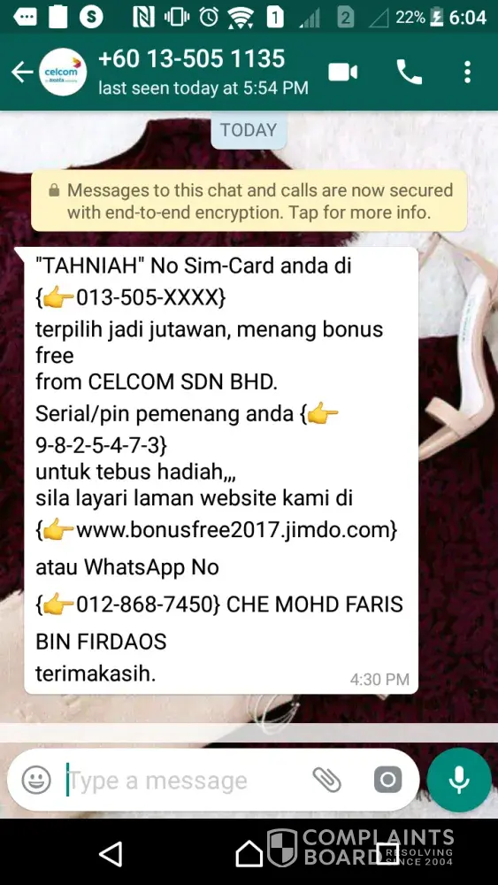 whatsapp scammed or not from celcom axiata