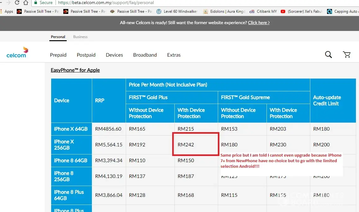 Please clarify did your CS inform me wrongly or is Celcom telling everyone on the iPhone 7+ NewPhone plan for those that subscribed back in 2017 that they have been screwed over! To repeat, your CS which clarified with his senior said: I cannot even get the new iPhoneX because im not on EasyPhone! Please pick an android only phone.
