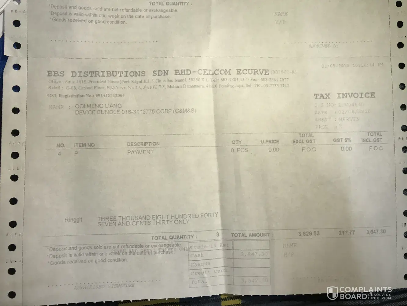 20. After spending an hour and ten minutes there without any constructive solutions, we asked for all the staff names and contact numbers to be used in lodging a complaint to Celcom and KPDNKK.