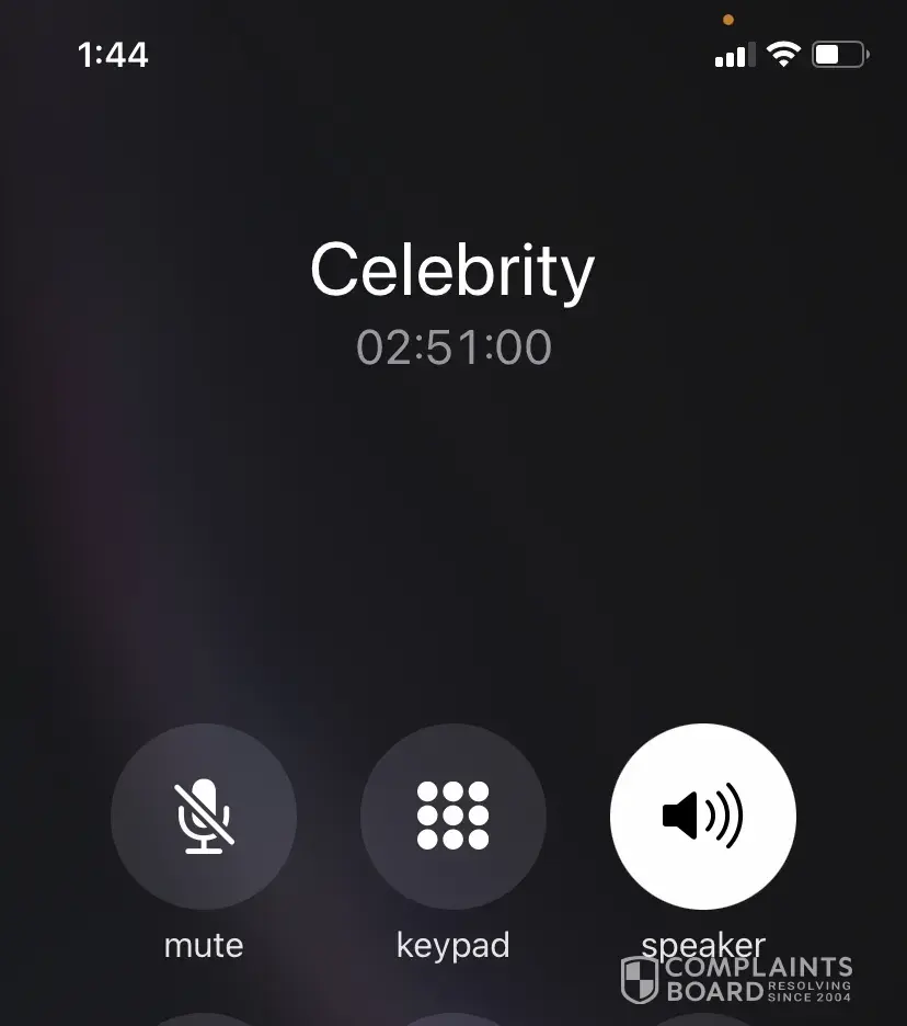 Two phone calls to Celebrity were not answered after 6 mins