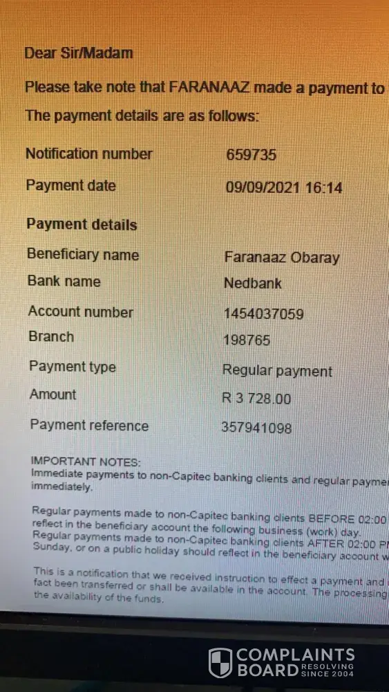 I took out a contract and insurance with Cell C New Park Kimberley. I took my phone for an issue about 2 months ago, I was advised to pay an excess fee which I did. The instalment for the month has also gone off but I still do not have a phone . How do you pay for something u dont have ? I have been given excuse after excuse, I was told the phone cannot be repaired so I will receive a new phone, then they said they never received the excess payment which I sent a proof of payment .I am at my wits end, a cell phone is a need in today's life. I hope you can assist to resolve the matter for me urgently. Regards Faranaaz Obaray [protected]