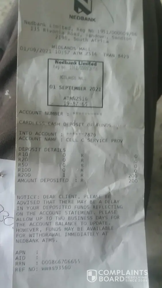 Cell C has left an official reply on this complaint.