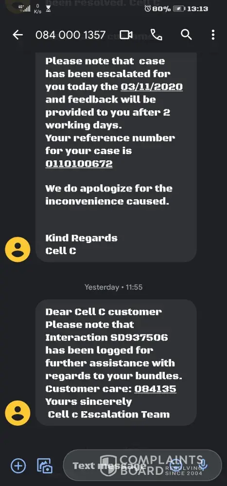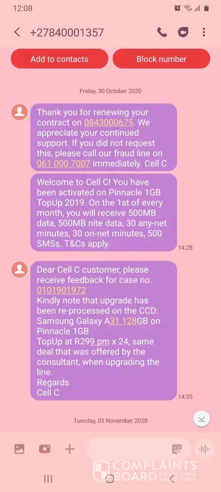 This happened on the 28/10/2020, I went and registered the claim at cell c fourways mall branch on the 29/10/2020.