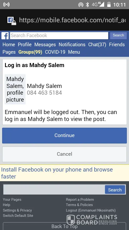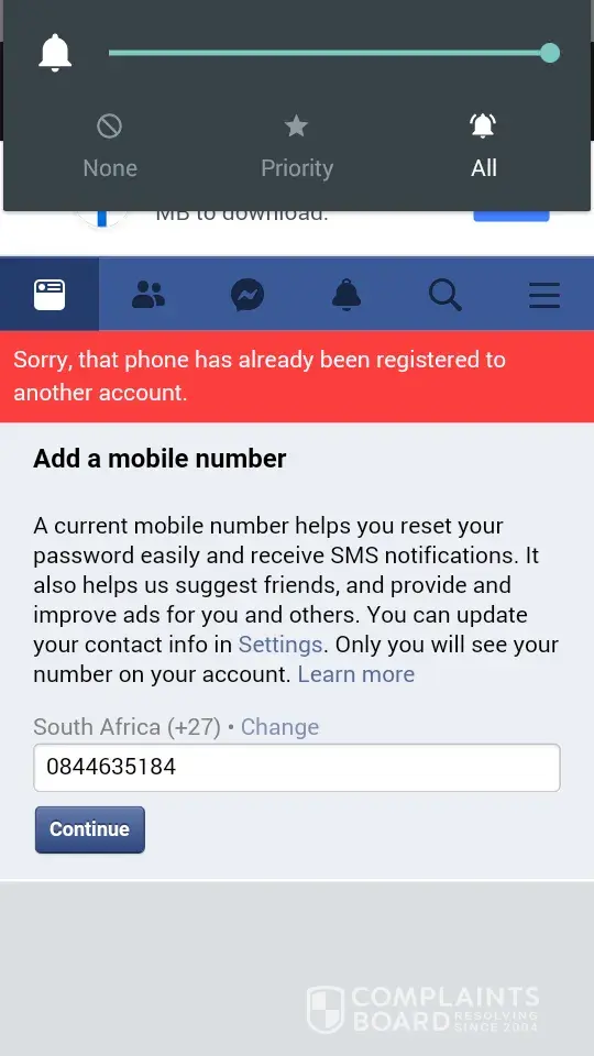 When I am trying to log in I get a message that my number is being used by some one else, this is causing too much stress in my life right now how can CellC allow someone to have my number or clone it or why is Facebook not blocking the individual then? Please will u resolve this I had gotten another message that my number is on telegram really...wow.This is my personal information being at risk for public consumption.
