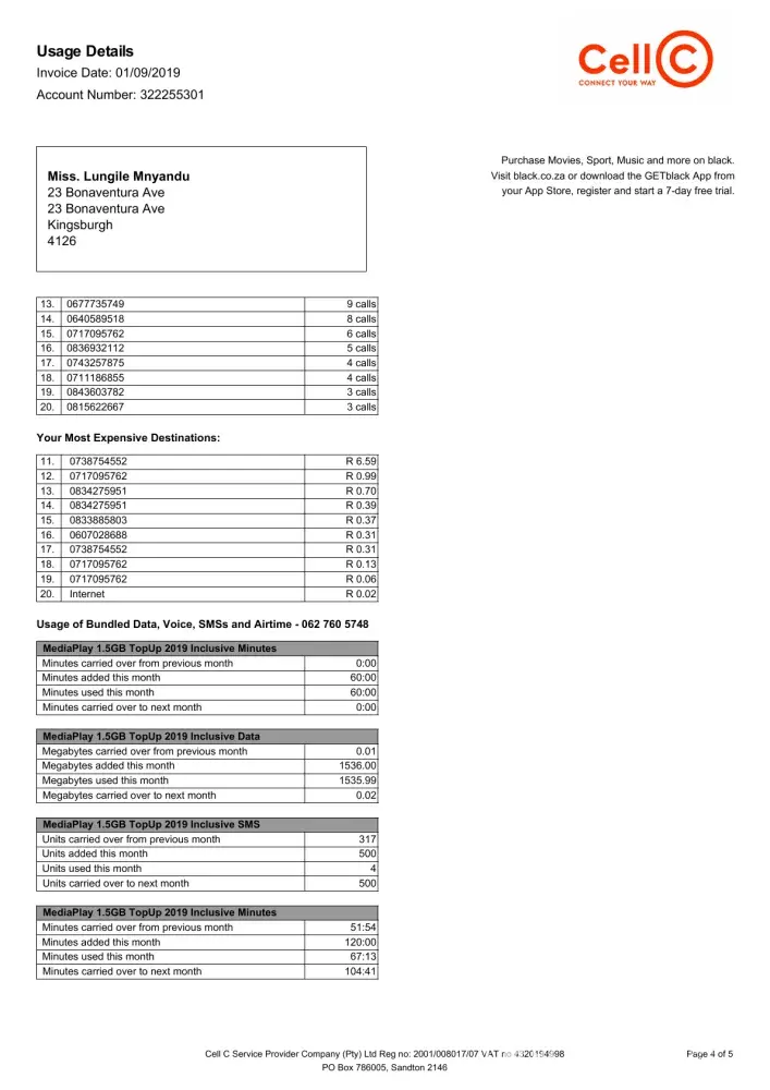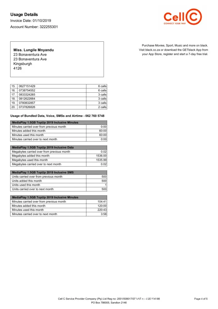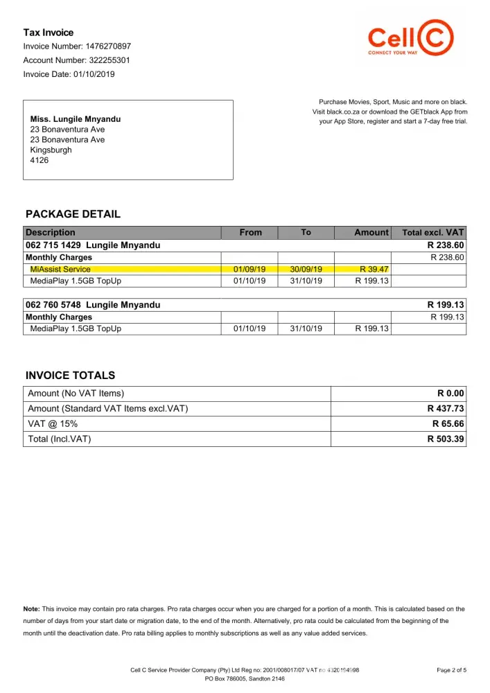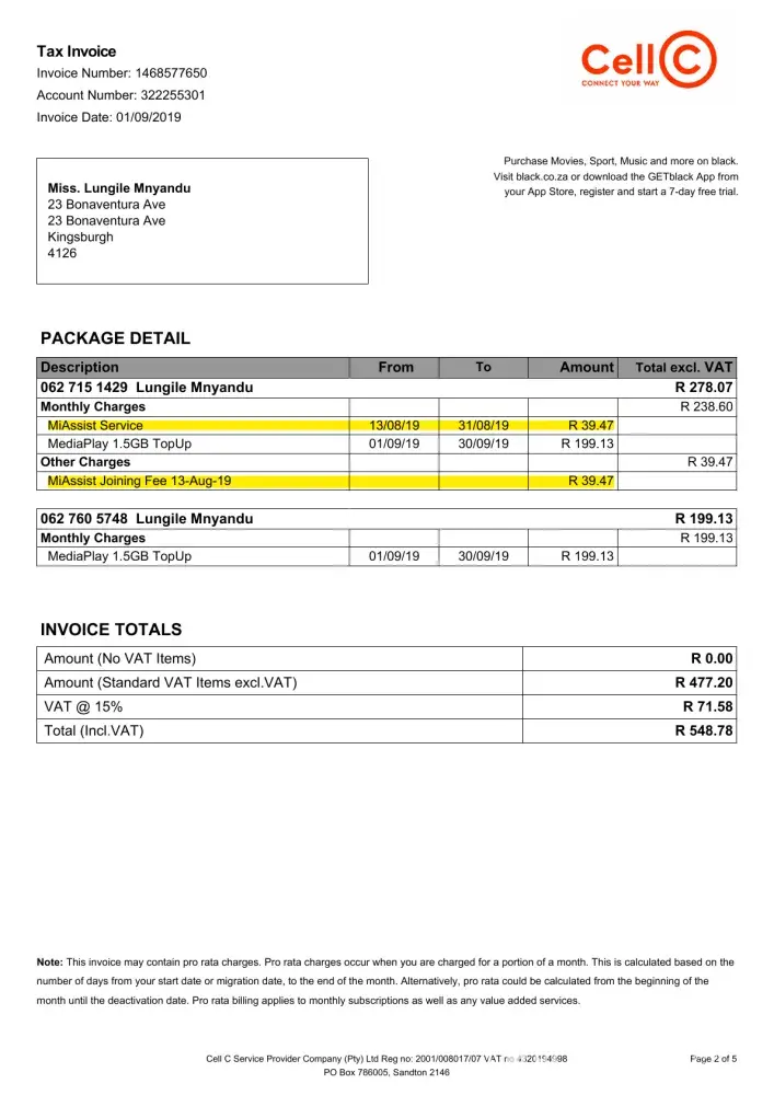 He was then left with one option of contacting Cell C's customer care centre and report that the services which were activated on one of the numbers.