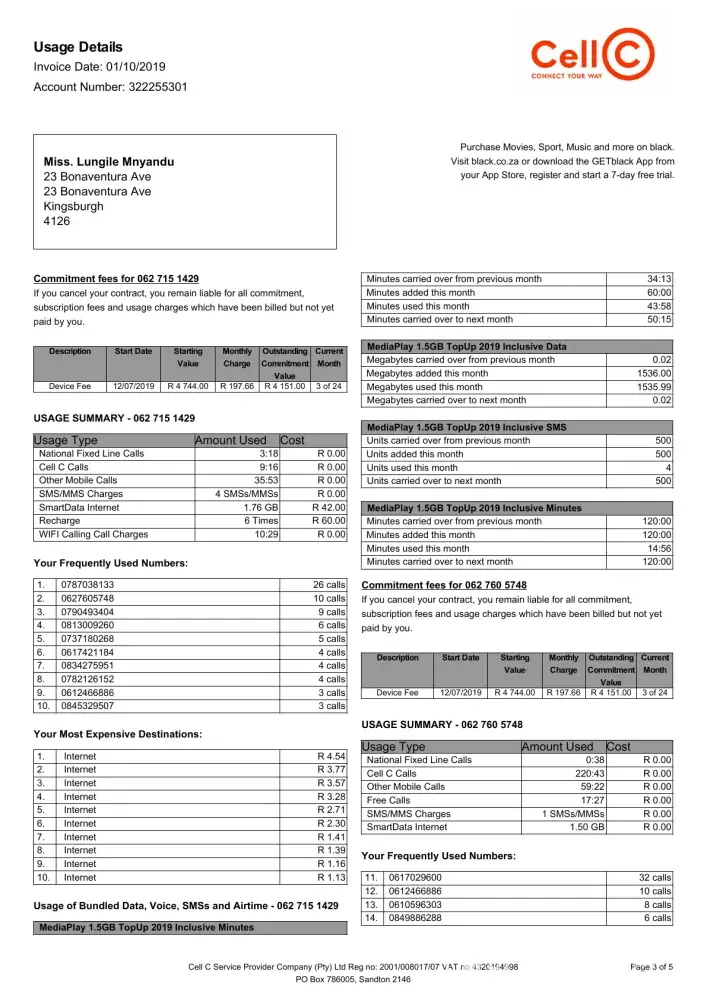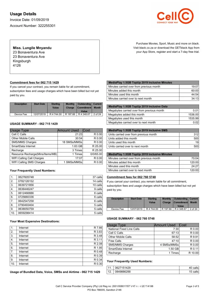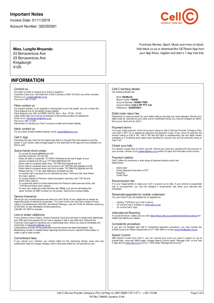 In July 2019 I took out a contract with Cell C at the Galleria Branch, with the two agreement numbers : [protected] & [protected].