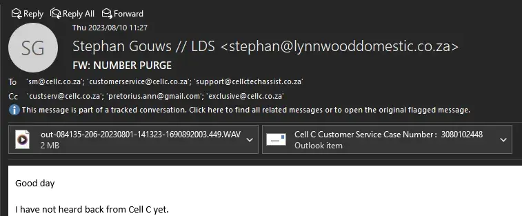 Cell C Customer Service Case Number : [protected]. What has supposed to be a simple contract renewal has turned into an absolute mess yet again.