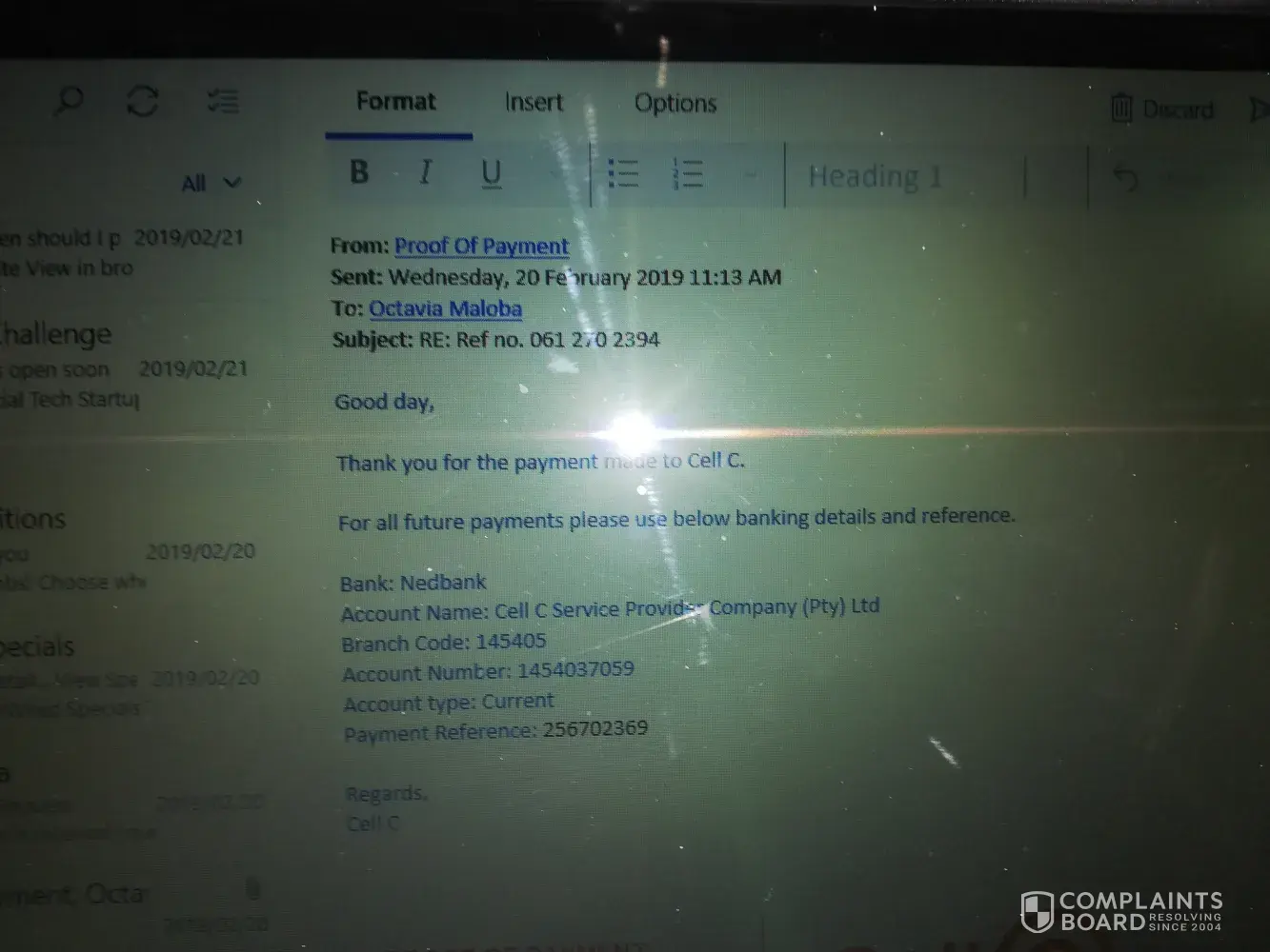 In July 2019 I called in at customer care services asking for my settlement amount on my Wi-Fi contract because I was aware that it's ending in September /October 2019. I spoke to one lady who gave me my settlement amount which was R252. I went and pay the money at Nedbank immediately as directed. What I was not told was that I should call back again and tell them that I paid the money. I didn't have that information and the consultant didn't tell me that after depositing, my account will not be closed. To me paying with a reference and having to call first was enough to me for my account to be closed. On 15 August 2019, I realised that R57 was deducted from my account by Cell C. Seeing that, to me it was the small money left behind before my account was closed. On 13 September 2019, a debit order went through from Cell C again for R295, 00 even though my contract was for R279 - R281 maximum, I was surprised what was it for, I called Cell C customer care and was told that my account was not closed. It was on Wednesday and the lady I spoke to said to me she couldn't hear what the lady was saying on record and promised to call me back on Friday after the recording have been listened to. I waited for that call but nothing. I reversed that debit order and told the lady that I'll await her call but nothing. I'm not happy with the way this matter is being handled because me reversing the debit order every month and Cell c doing nothing about my request affect my credit record. I wrote in an email to account department but no one responded. Should this matter not be resolved in the next 7 days, I will lay a complaint with consumer goods and services ombud. This is frustrating because your consultants takes an advantage of us by saying they referred my complaint to a certain department while lying. I believe all your calls are recorded and you'll be able to track my recording where I request settlement of closing my account. I'll appreciate your swift response to avoid unnecessary inconveniences. This is tiring because I'll not allow you to debit my account whereas I know very well that I asked for my account to be closed upon paying my settlement. It is your consultant's incompetence which led to this and how you sort it out its not my concern.