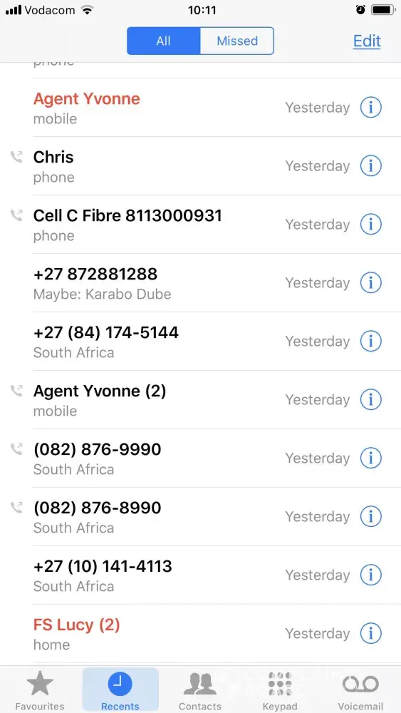 I have attached screen shot of my phone, there's no calls from her except the lady from Call center after 17h30 on 18 Feb 2019.