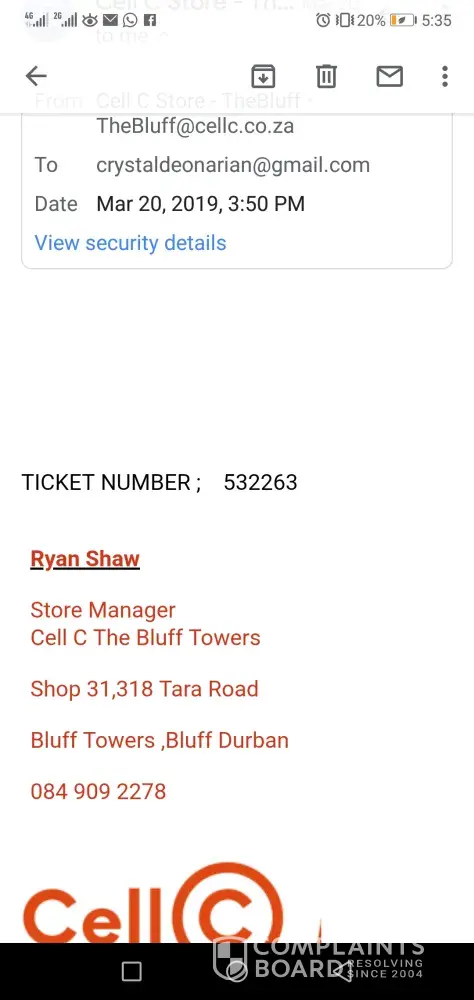 I will take this up with legal route until Cell C formally apologies and compensate for my time and mental suffering to resolve everything.