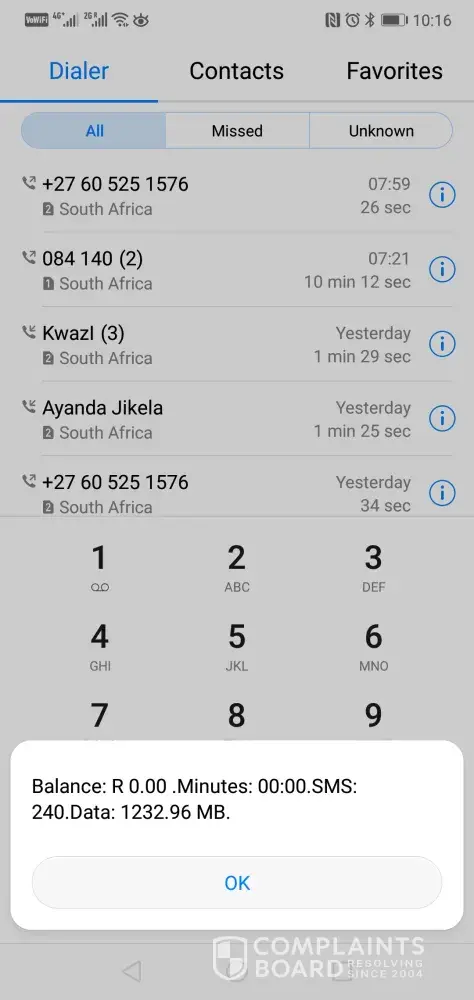On monthly bases I get 120 minutes, 120 sms's and 1G of data, however this month I only got the sms's and the 1G of date on [protected]. While explaining to the consultant he told me that I used my minutes yesterday calling a 081 number which I assume would [protected] that would be my husband and he says I spoke to him for 119 minutes. Which obviously denied, he said I must check my call history which I did while speaking to him and there were no such records.