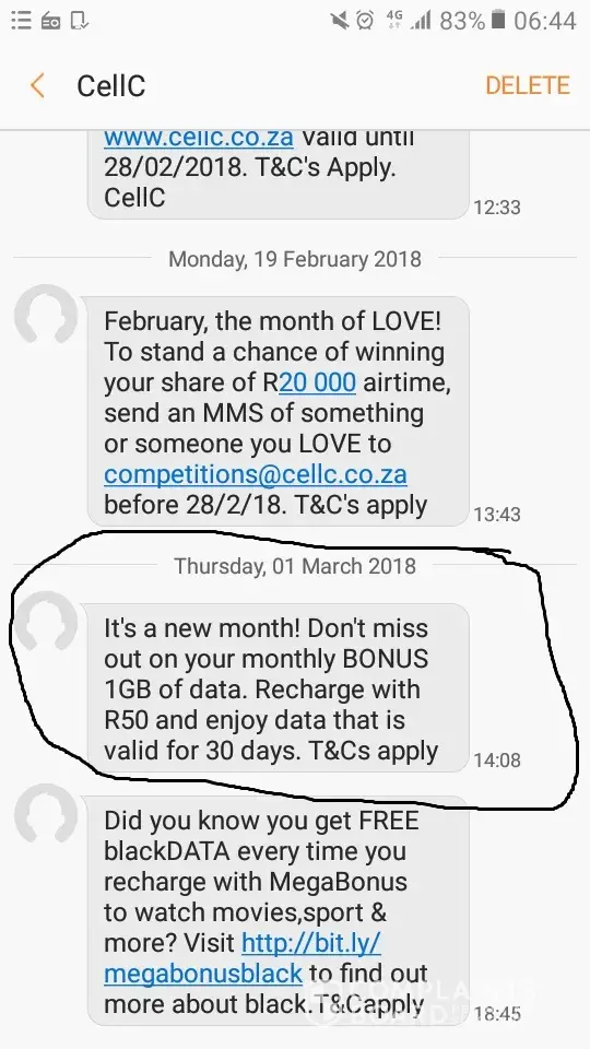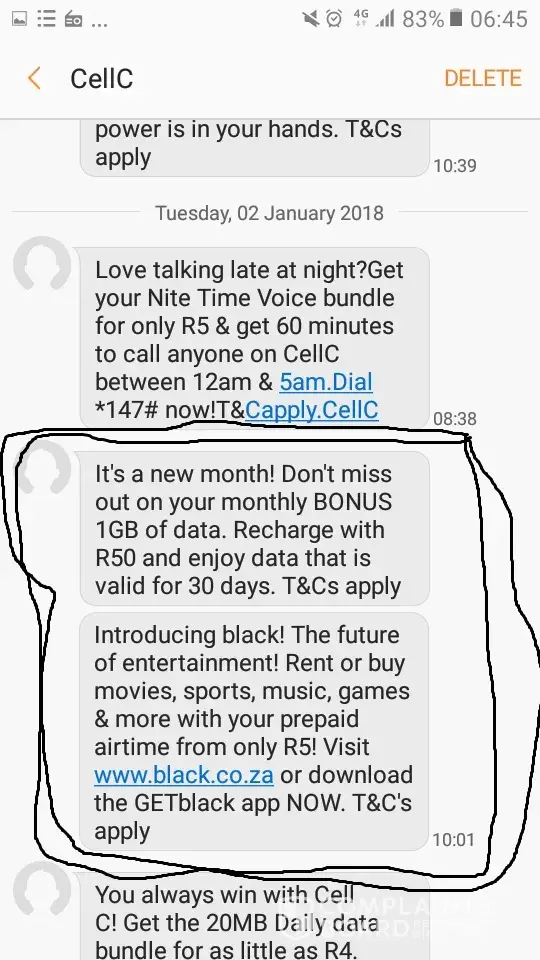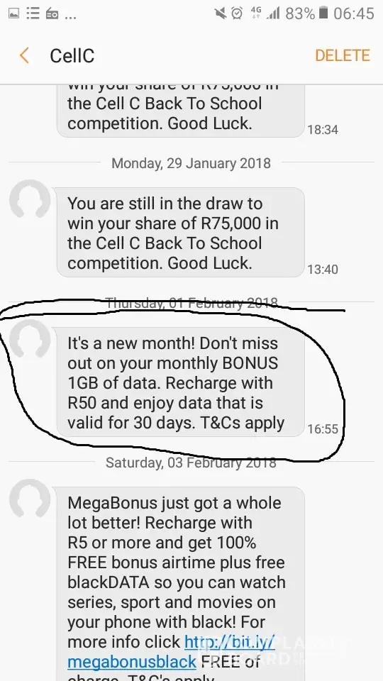 so now back to Cell C to request a refund from them, and low and behold, customer care yet again does not read the email and sends me an SMS saying I must contact Payfast.