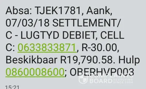 Upon contacting their call centre I was asked to send through an affidavit stating my claim, a copy of my bank statement showing all the debits from my account from Cell C and a copy of my ID. This information was sent through on the 22nd February and to date no one has contacted me from Cell C to settle this matter.