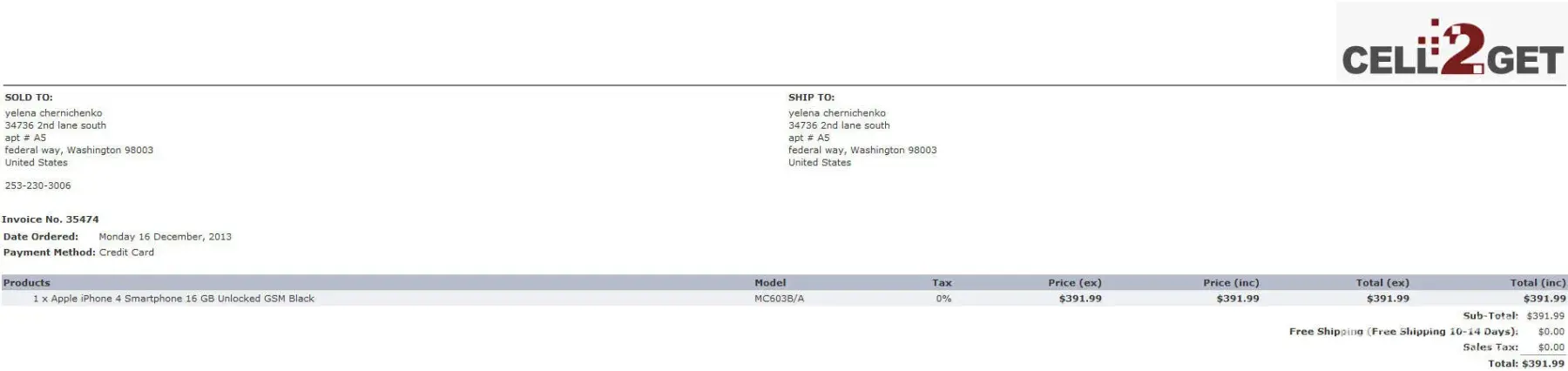 So I alert anybody to take care NOT to order anything to cell2get.com.