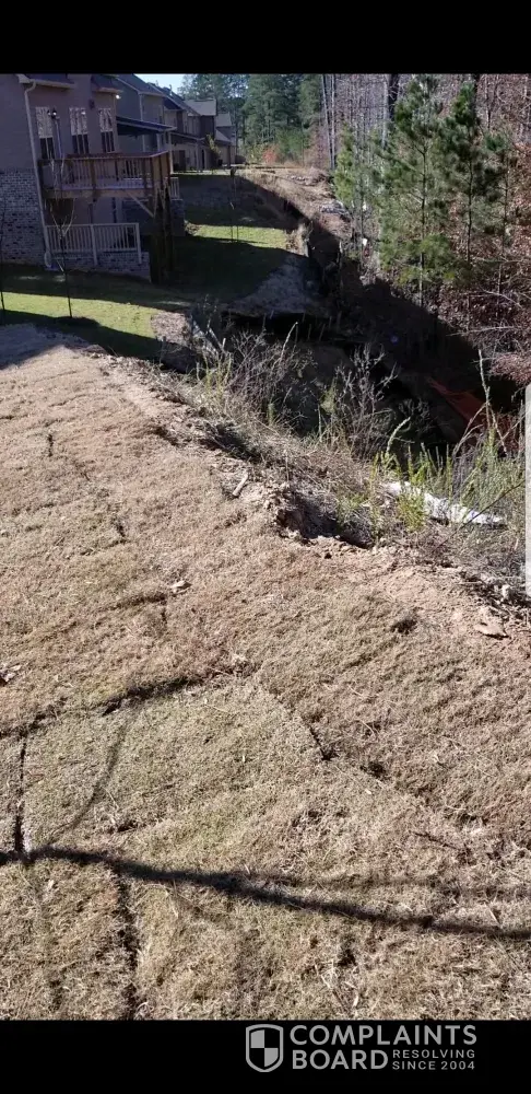 •The plot was level at the time of contracting the house. Upon final inspection we find that the back yard is nothing but a ditch and virtually unusable. The yards could have been graded out and away from the housing without swales.