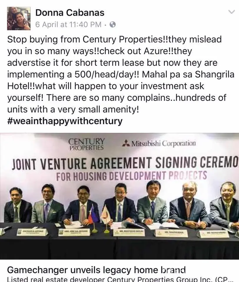 Please let your friends/relatives know about century properties being one of the worst developers in the philippines.