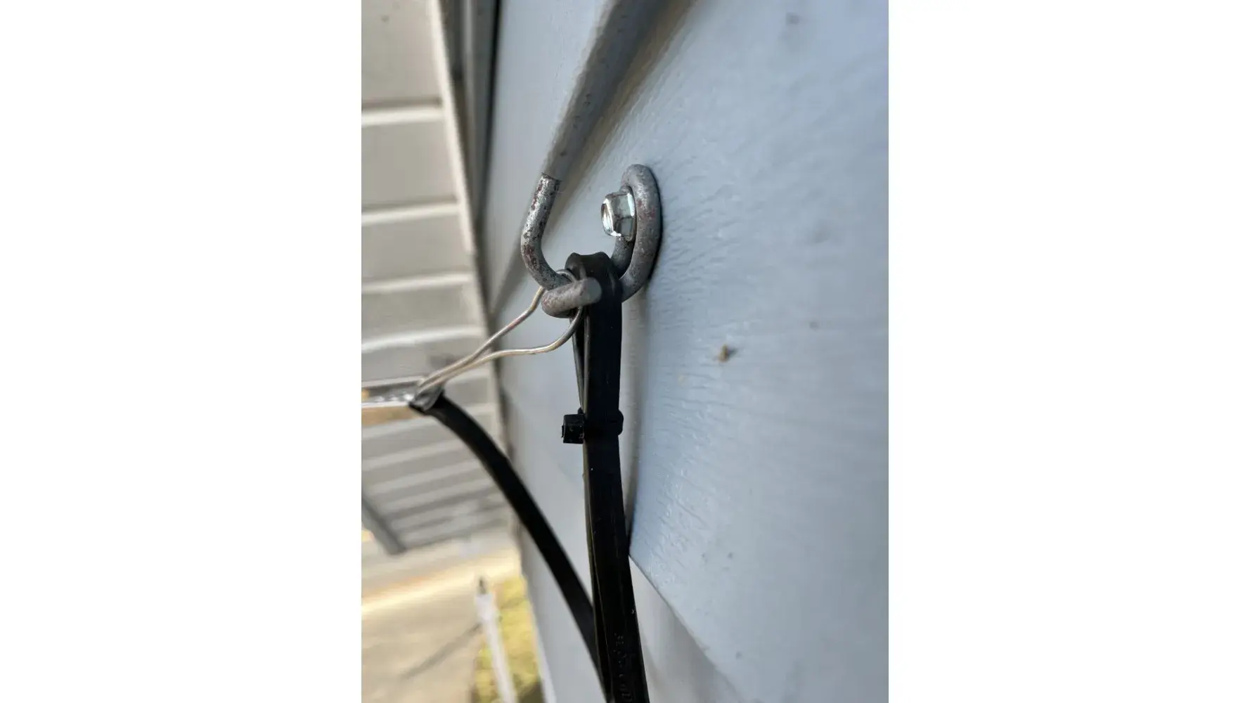 Improper installation of attachment point for coax cable on home