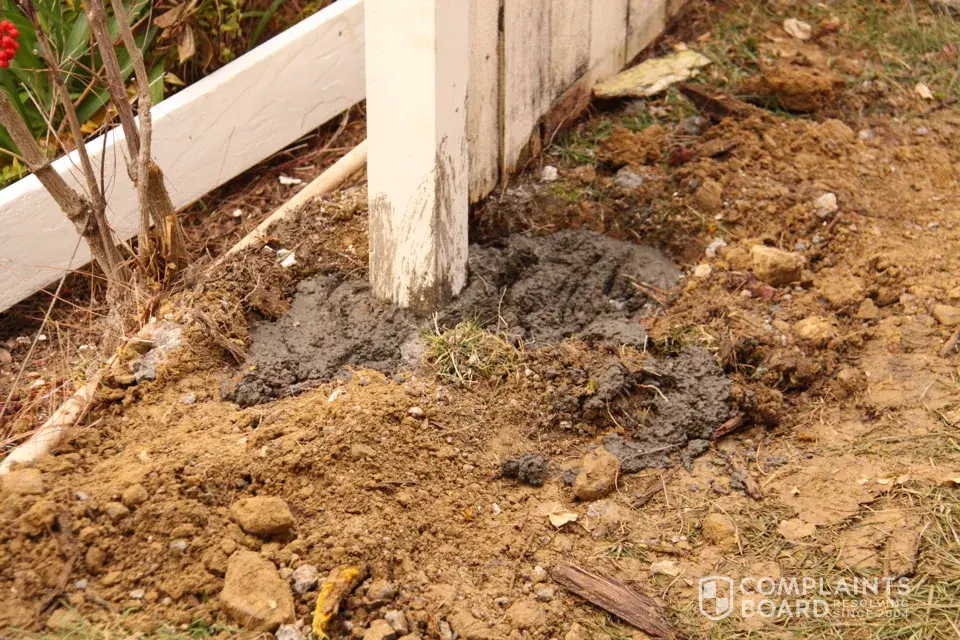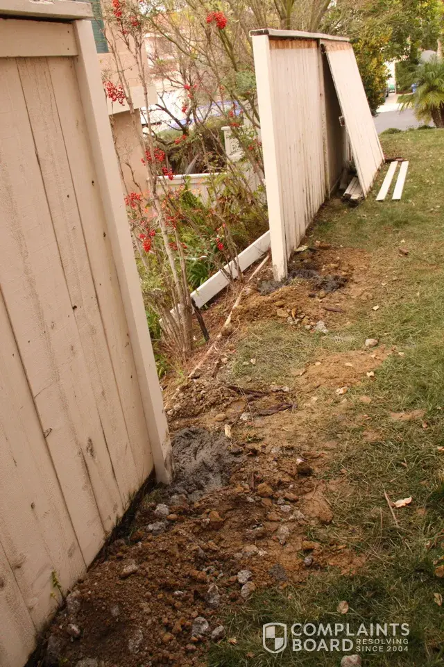 When we came home and saw our yard trashed, we promptly notified the neighbors who brought the foreman over the next morning. He agreed to make changes and let us see the fixes before the fence was reinstalled. We asked him for a business card. He said he didn’t have one on him but would get one. However, while we were gone from 9:15 AM to 10:45 AM, Certapro once again came on our property without authorization, covered the cement with dirt, put back the fence and, in the process, cracked most of the boards on our side, including the two new posts. In addition, they not only failed to re-install the bottom rails but took them without our approval. Meanwhile, the foreman left the premises and didn’t leave a business card. When we pointed out our concerns to the site supervisor, he gave us no contact information but said they’d be back Monday. They never returned.
