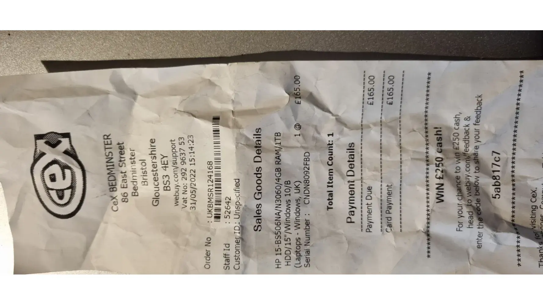 Fault developed in right earbud within 2/3 days and returned on the 27th June 22 (Grade A product - should have been tested thoroughly) returned the item to the Bolton store, which is near my place of work. Advised it would be subject to a 10-15 minute test. I returned after 20 minutes, advised it was indeed faulty and replacement or refund available. I opted for a replacement as i liked the headphones, in a different colour as they didn't have same colour. Took them a further 20 minutes to find the headphones, processed the exchange and was emailed a receipt (or so I was told)