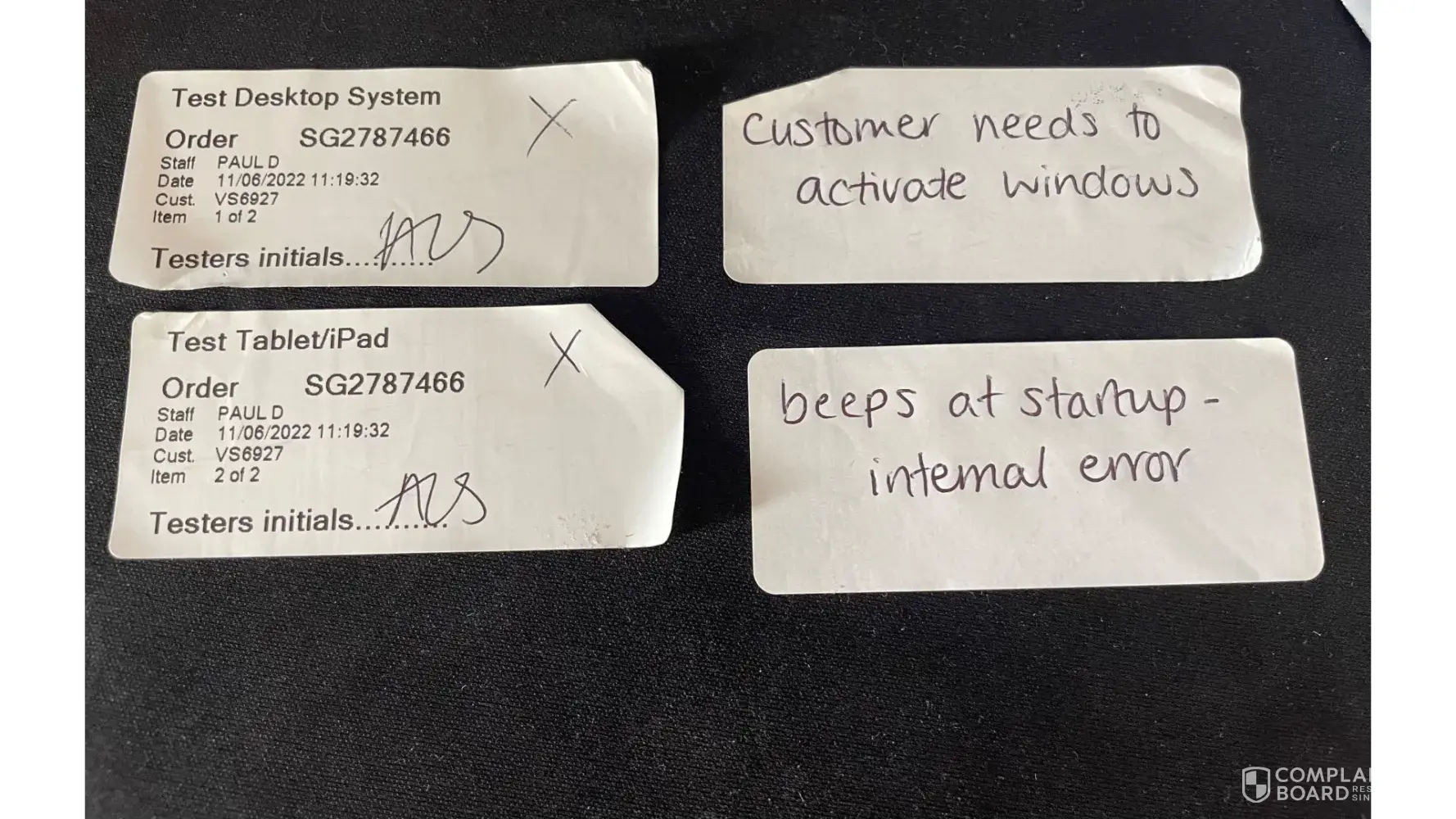 These were placed under order SG2787466 and tested by 'Paul D' on 11/06/2022 both at 11:19:32
