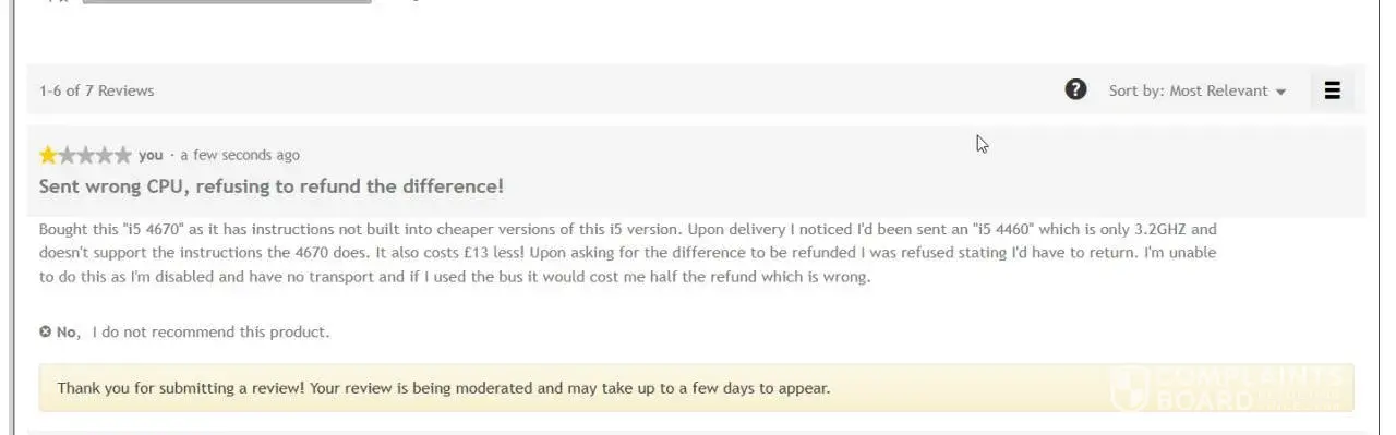 They sent an i5 4460 which isn't what I ordered and had specs/features that I couldn't use fully. This CPU also cost only £35 not £48.
