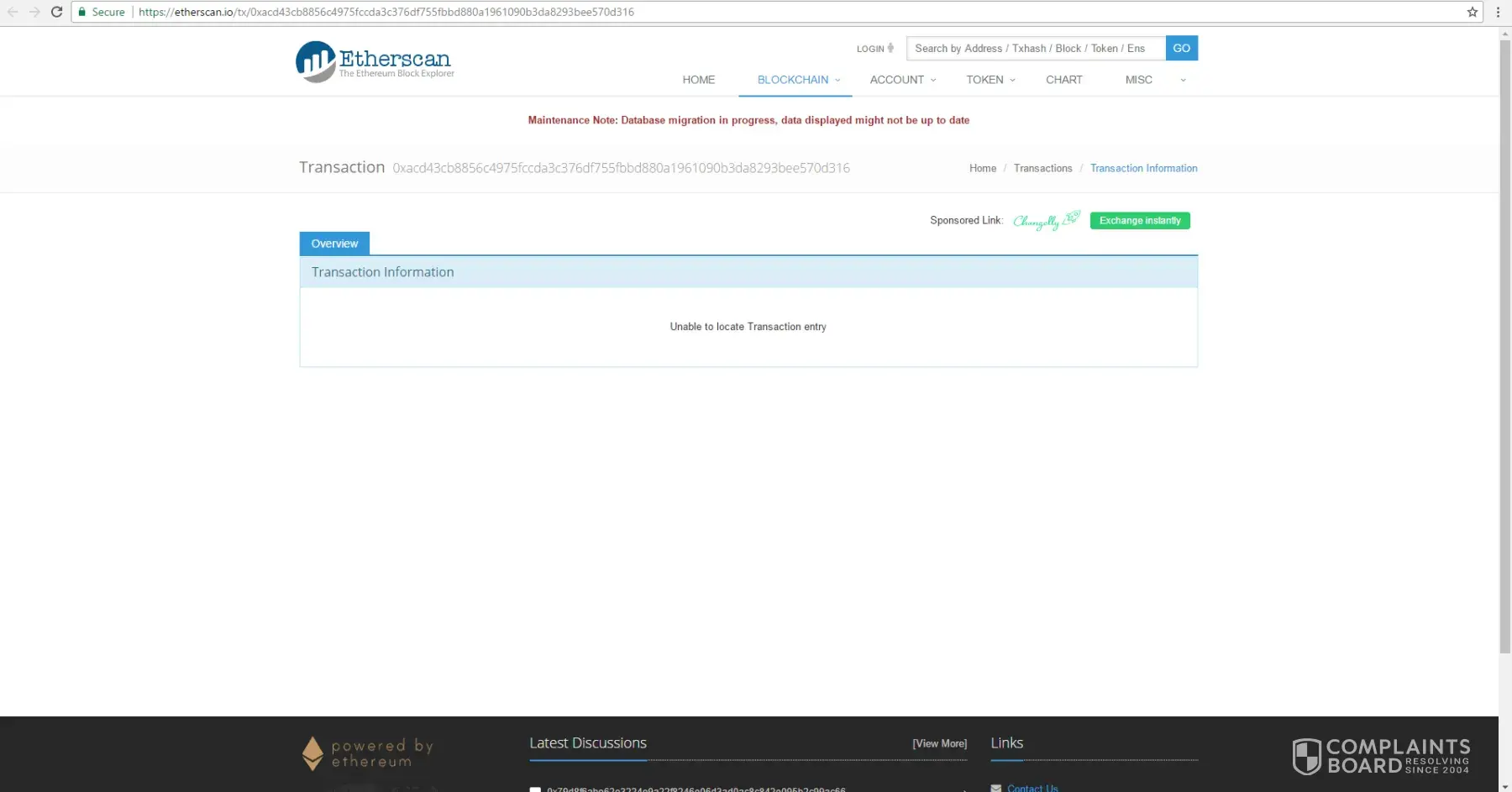 Hoping for my ETH to be transferred properly to the requested address, if not then compensate equally.